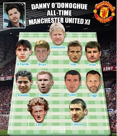 Sir Alex Ferguson után Pep Guardiolát vagy José Mourinhot látná szívesen a Vörös Ördögök kispadján. Végezetül álljon itt Danny Man. United álomcsapata.
